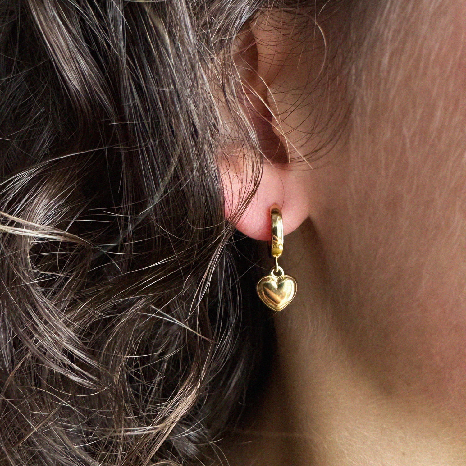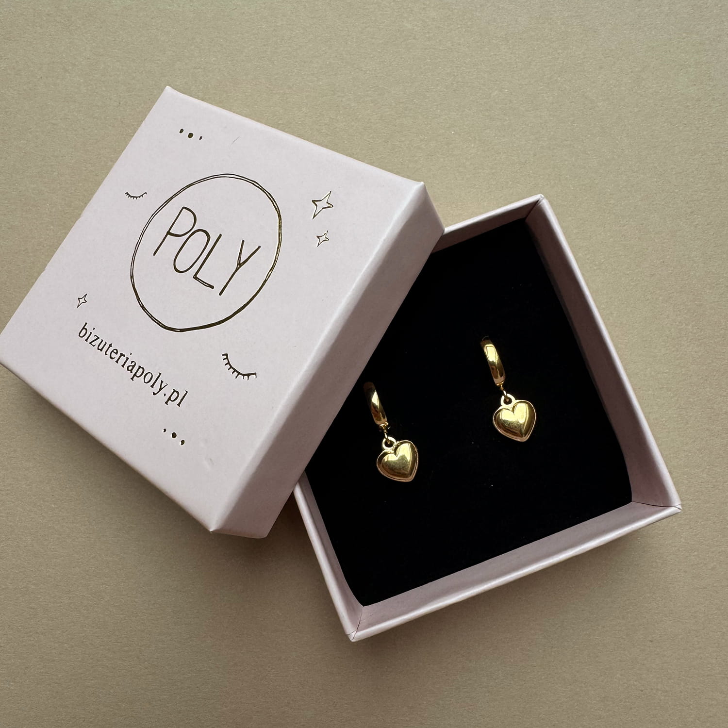 Kolczyki pozłacane AMORE z zawieszką w kształcie serduszka.