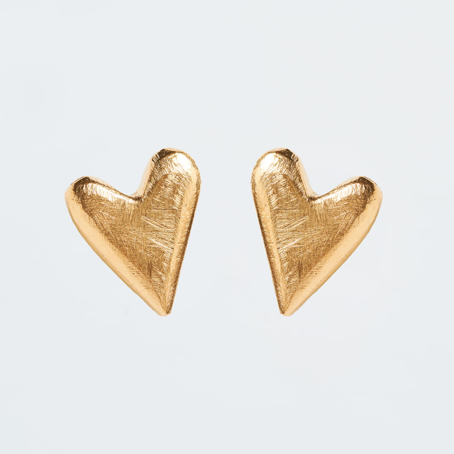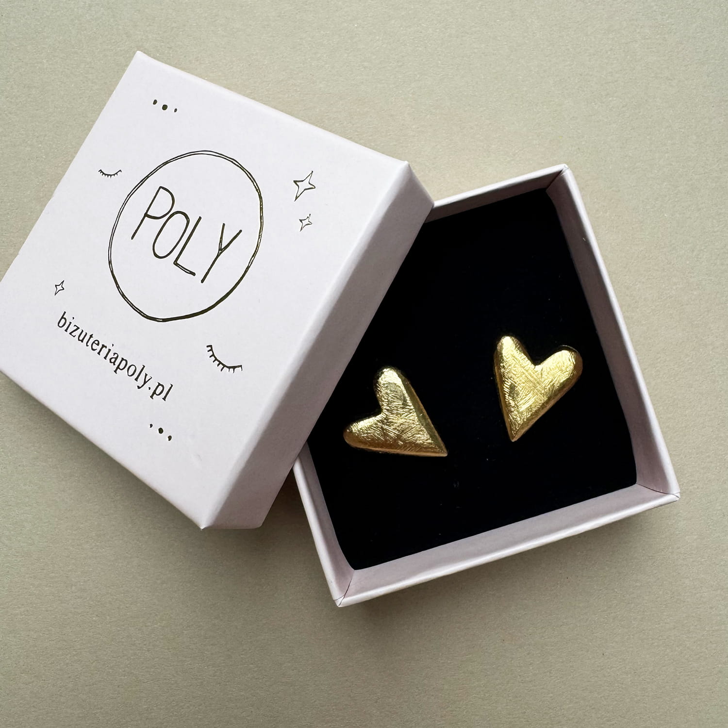 Symetryczne kolczyki sztyfty pozłacane YES I DO w kształcie serca.