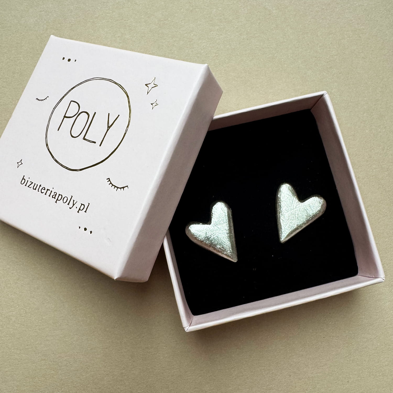 Symetryczne kolczyki sztyfty YES I DO w kształcie serca.