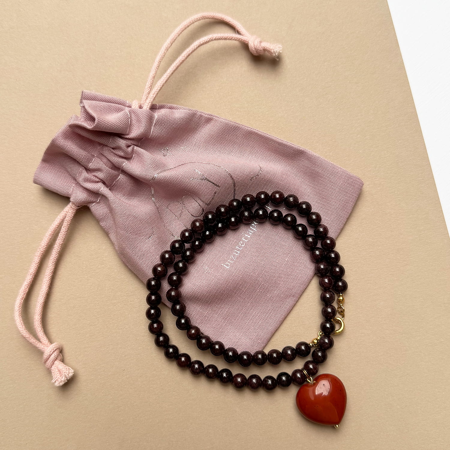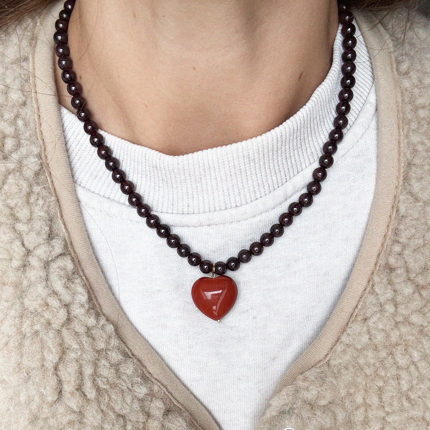 Naszyjnik z kamieni naturalnych AMORE z zawieszką z motywem serduszka.