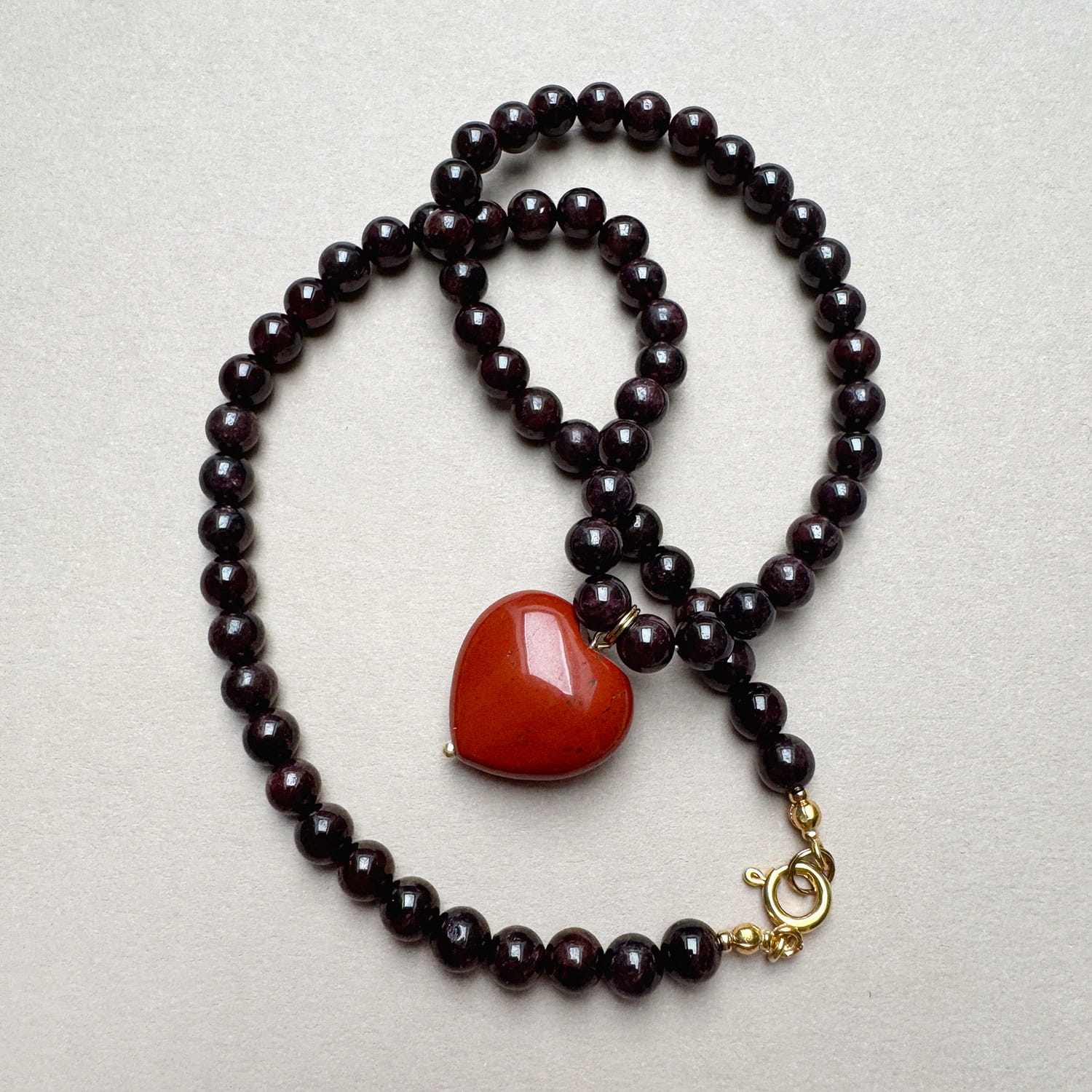 MATERIAŁ: granat, jaspis czerwony, srebro pozłacane 24 karatowym złotem.
