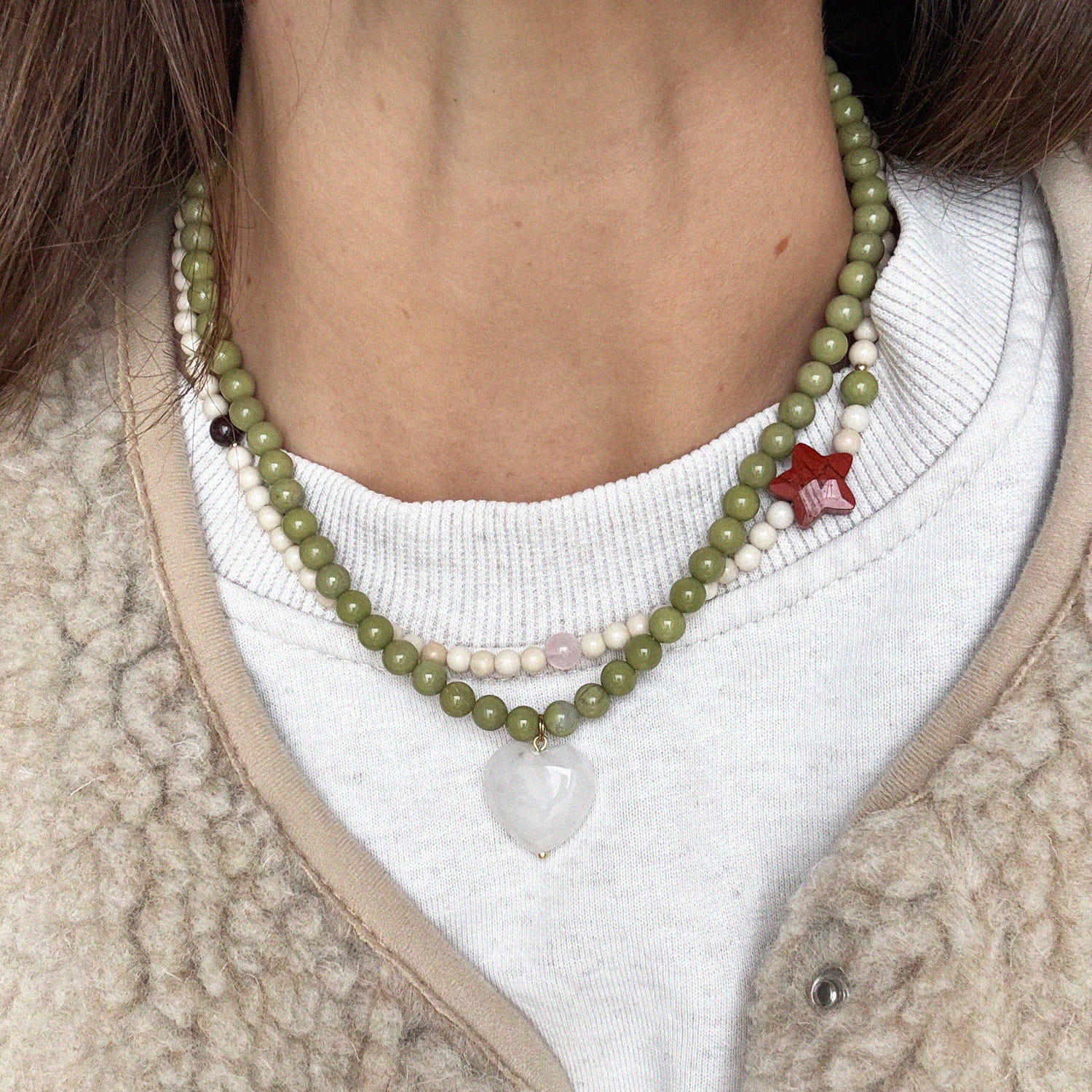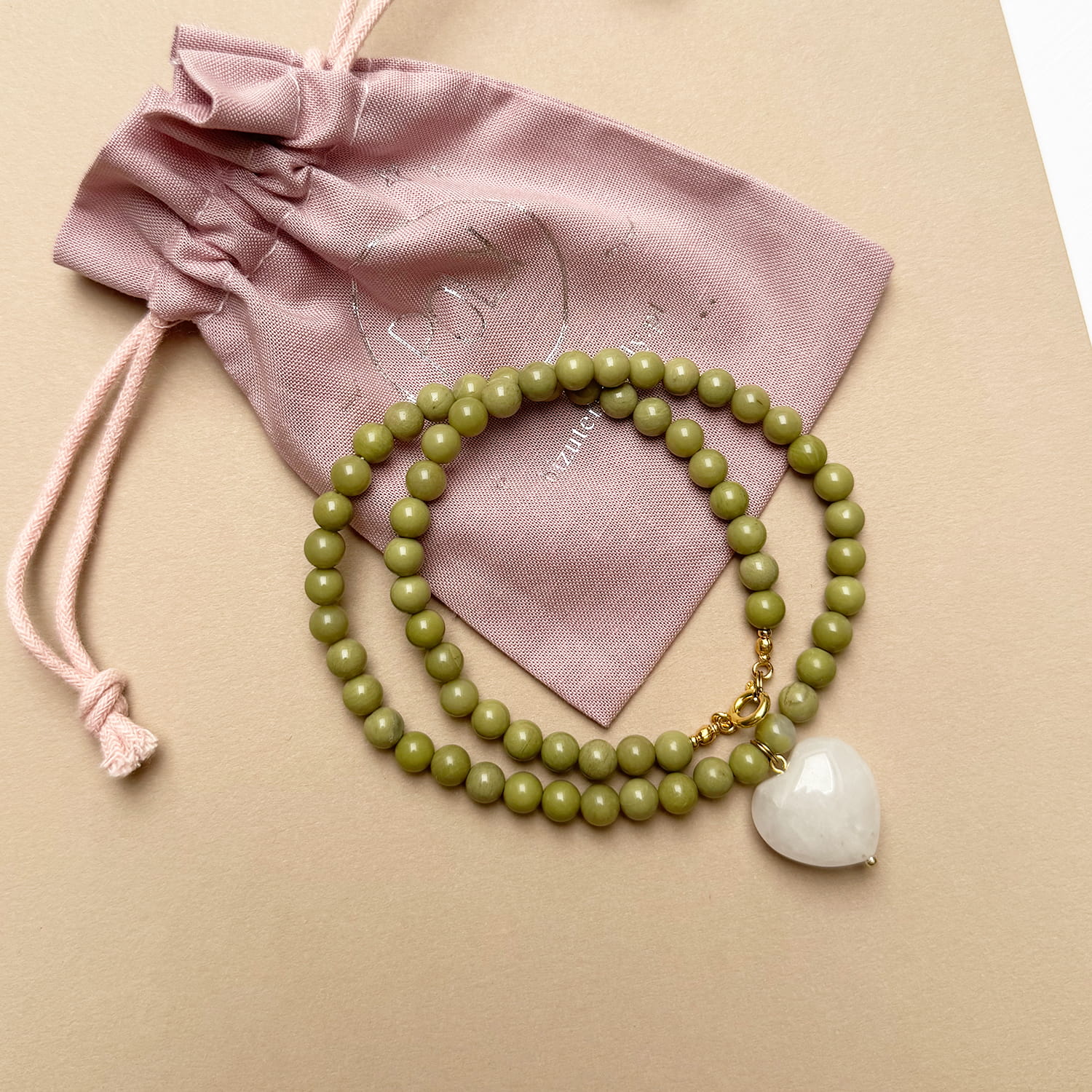 Naszyjnik z kamieni naturalnych OLIVE z zawieszką z motywem serduszka.